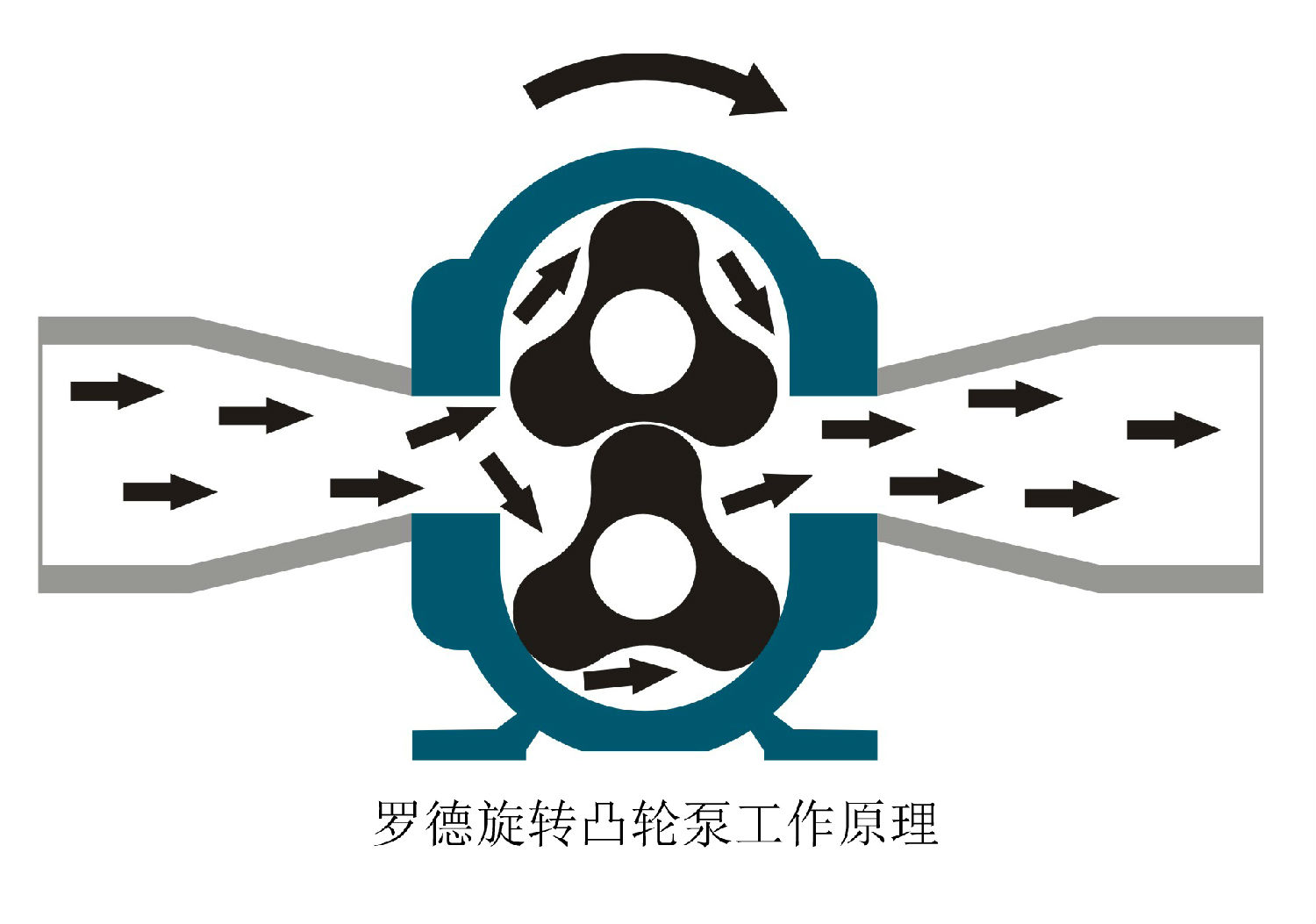 其工作原理為:由靜止的泵殼和旋轉的轉子組成,它沒有吸入閥和排出閥,靠泵體內的轉子與液體接觸的一側將能量以靜壓力形式直接作用於液體,並借旋轉轉子的擠壓作用排出液體,同時在另一側留出空間,形成低壓,使液體連續吸入。液體隨泵葉的轉動,被送往出口,繼續轉動,出口腔容積變小、產生壓力將介質輸出。